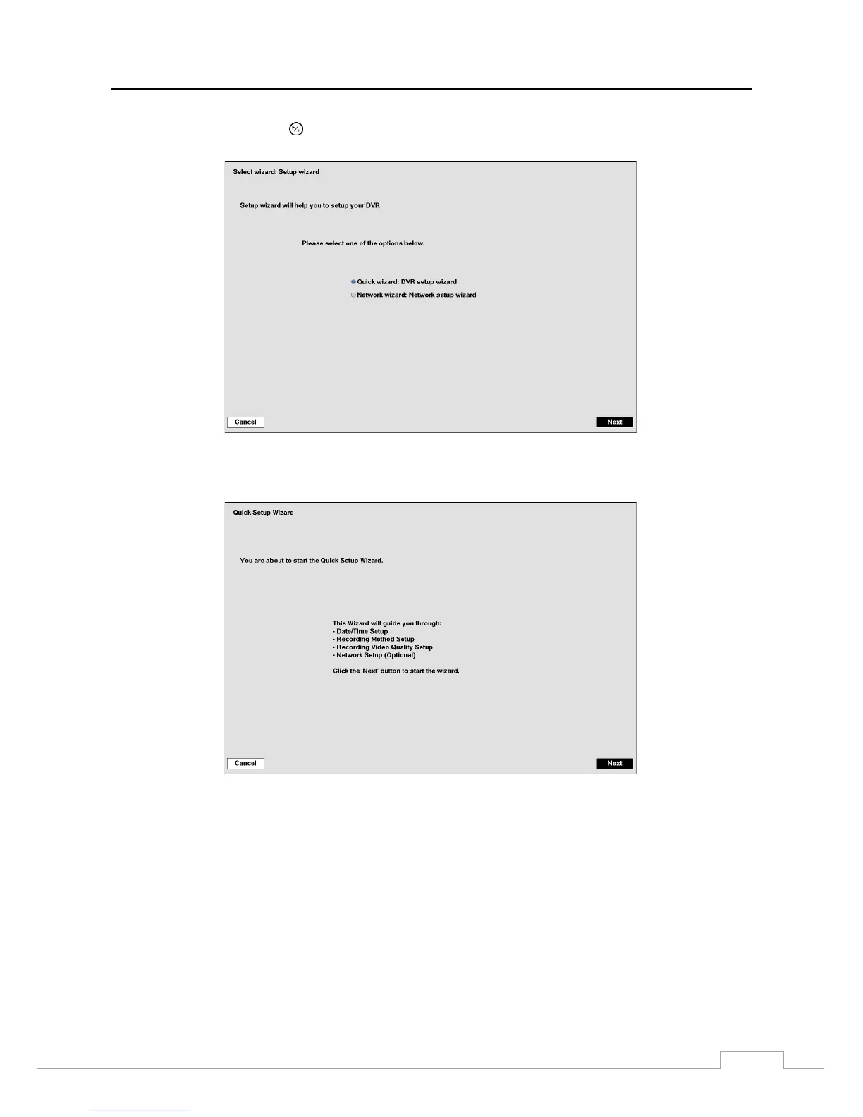 NOTE: Selecting the Cancel button throughout the screens exits the Quick Setup Wizard without saving your