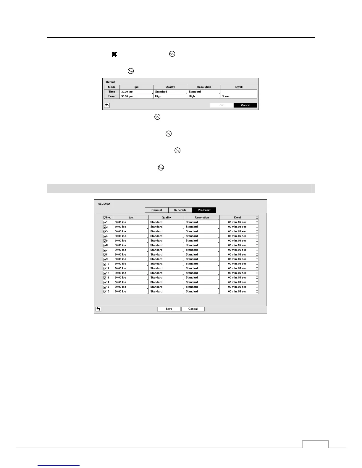 screen allows you to define how to handle pre-event recording. If you do not have Event set up in the Record Schedule,