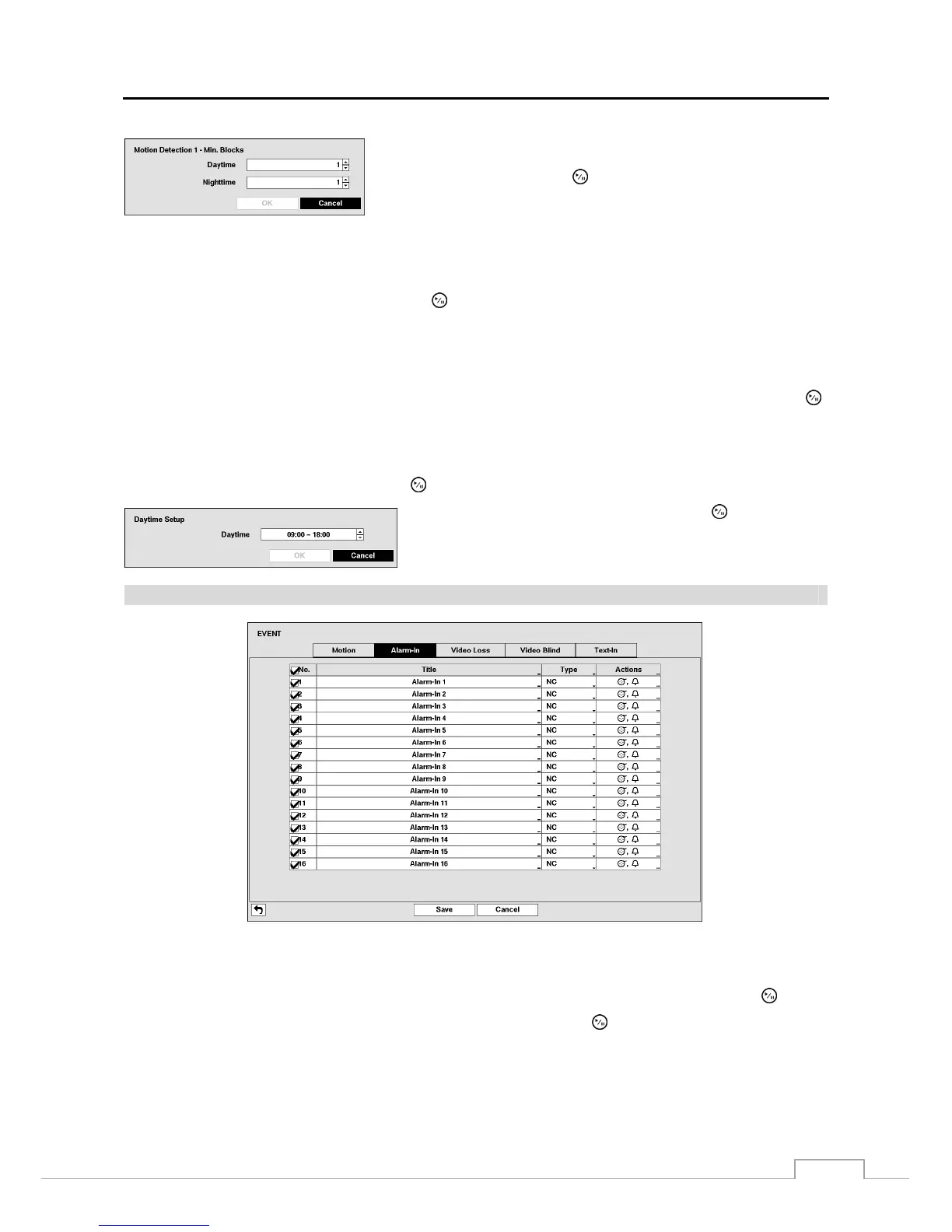 Up and Down arrow buttons to set the Daytime range. The DVR will