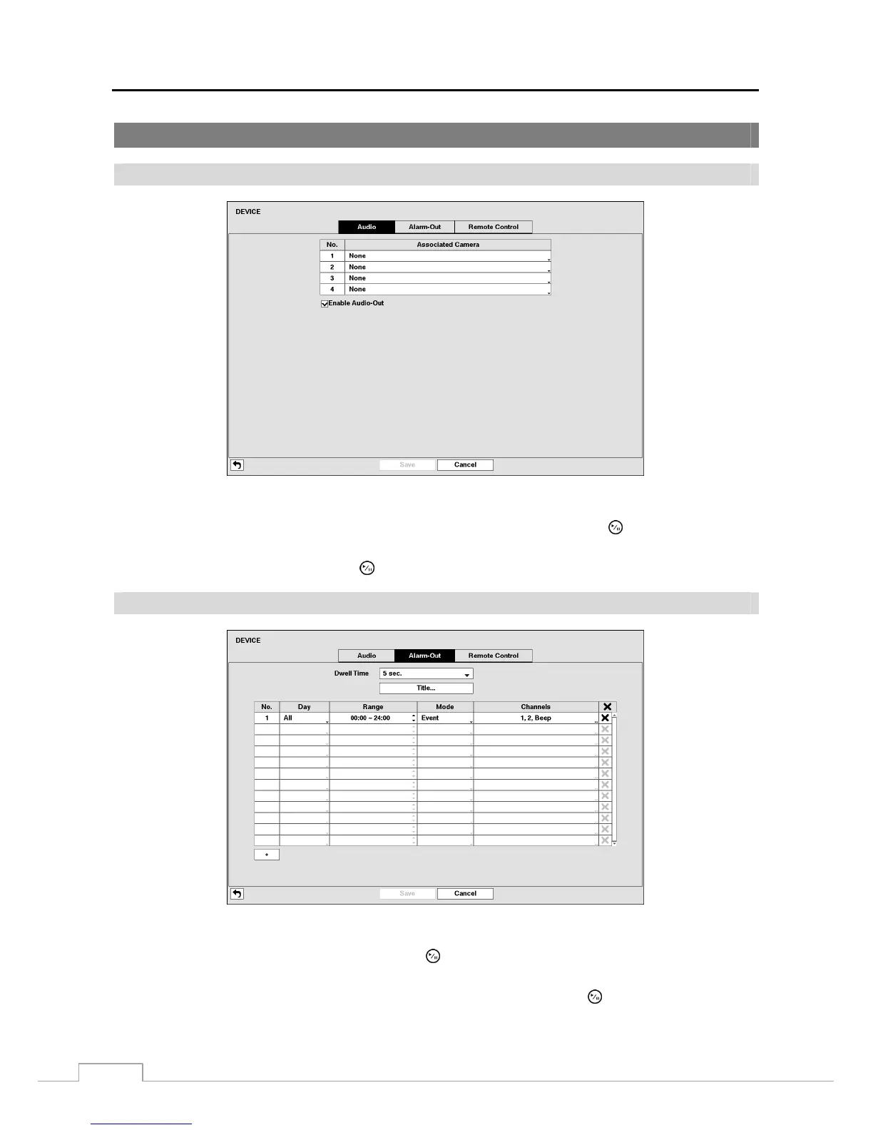 Highlight Enable Audio-Out and press the button. This toggles between enabling and disabling audio out.