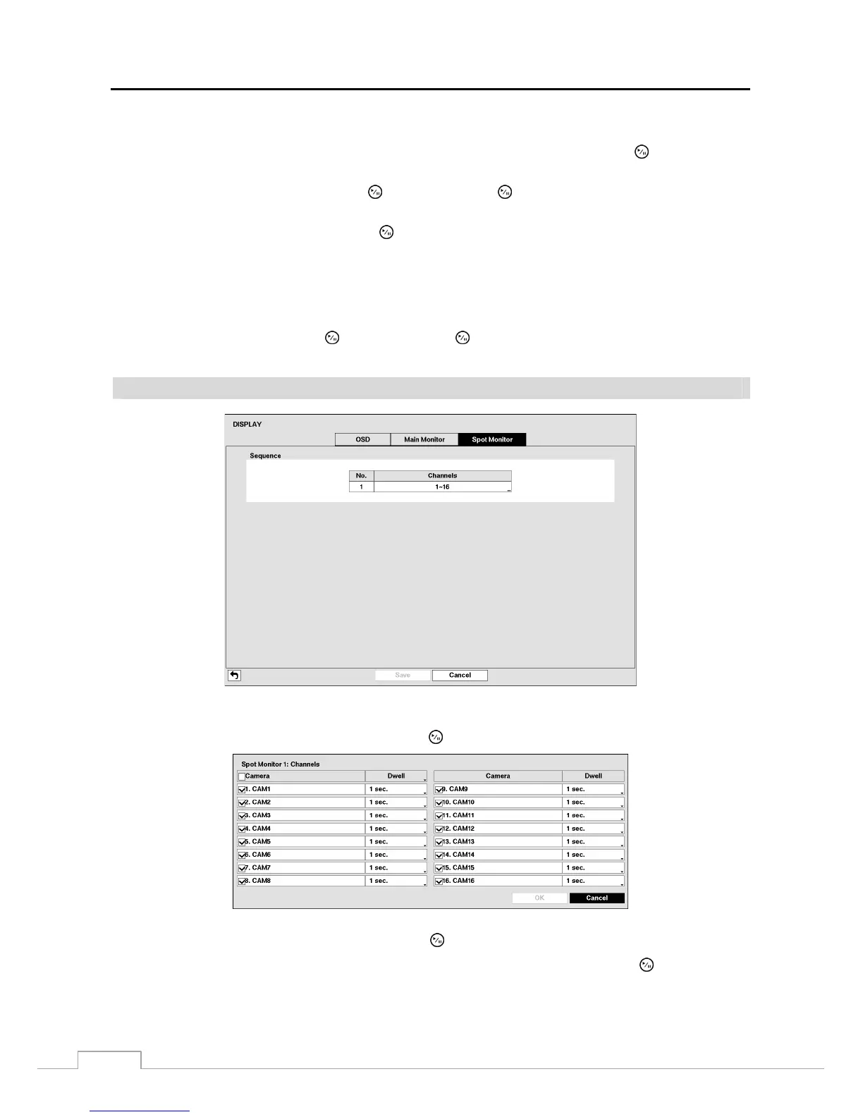 You can define which cameras display sequentially on the Spot Monitor when in the single-screen display format.