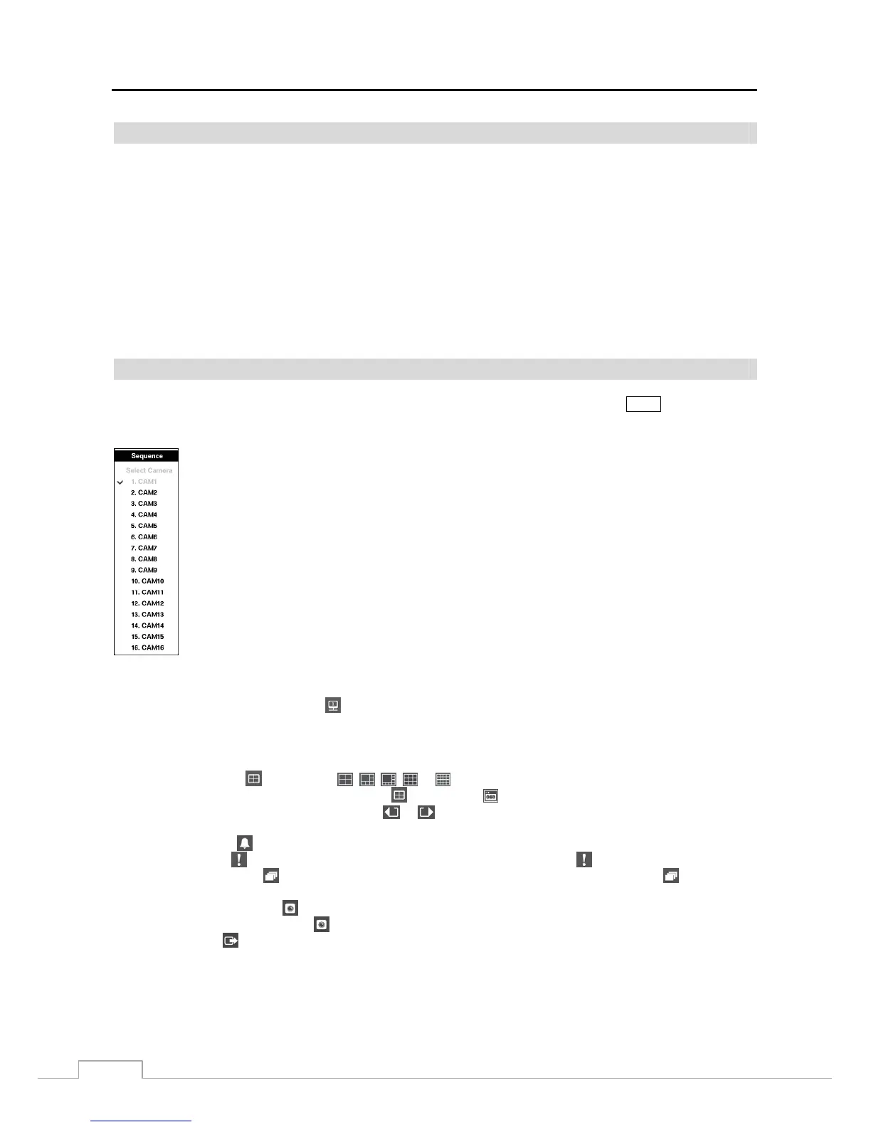 (Sequence) causes the cameras to display sequentially, and selecting again stops