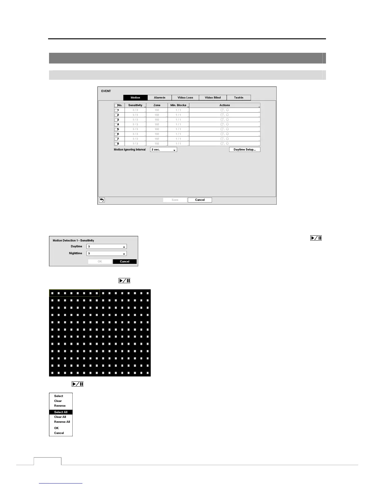 Select – Activates highlighted blocks to detect motion.
