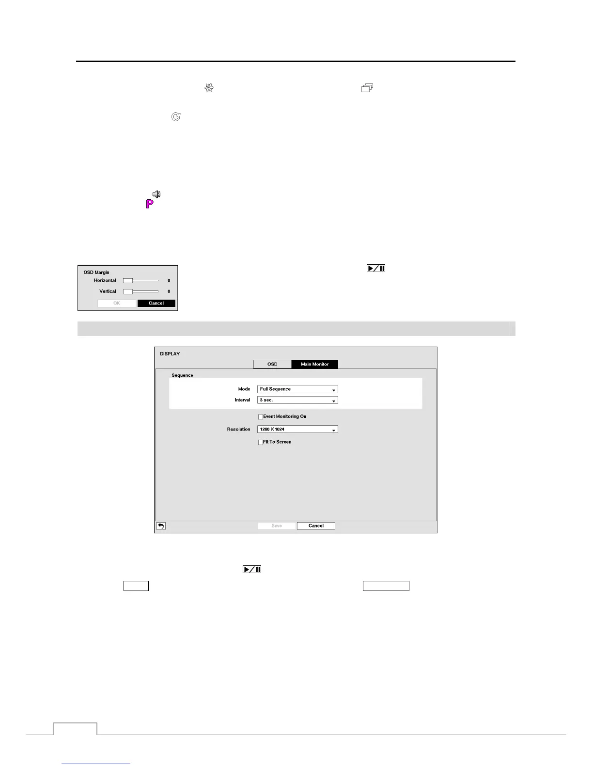 causes the DVR to sequence cameras, and the DVR can sequence cameras in two modes: “Full” and “Cameo”. In the