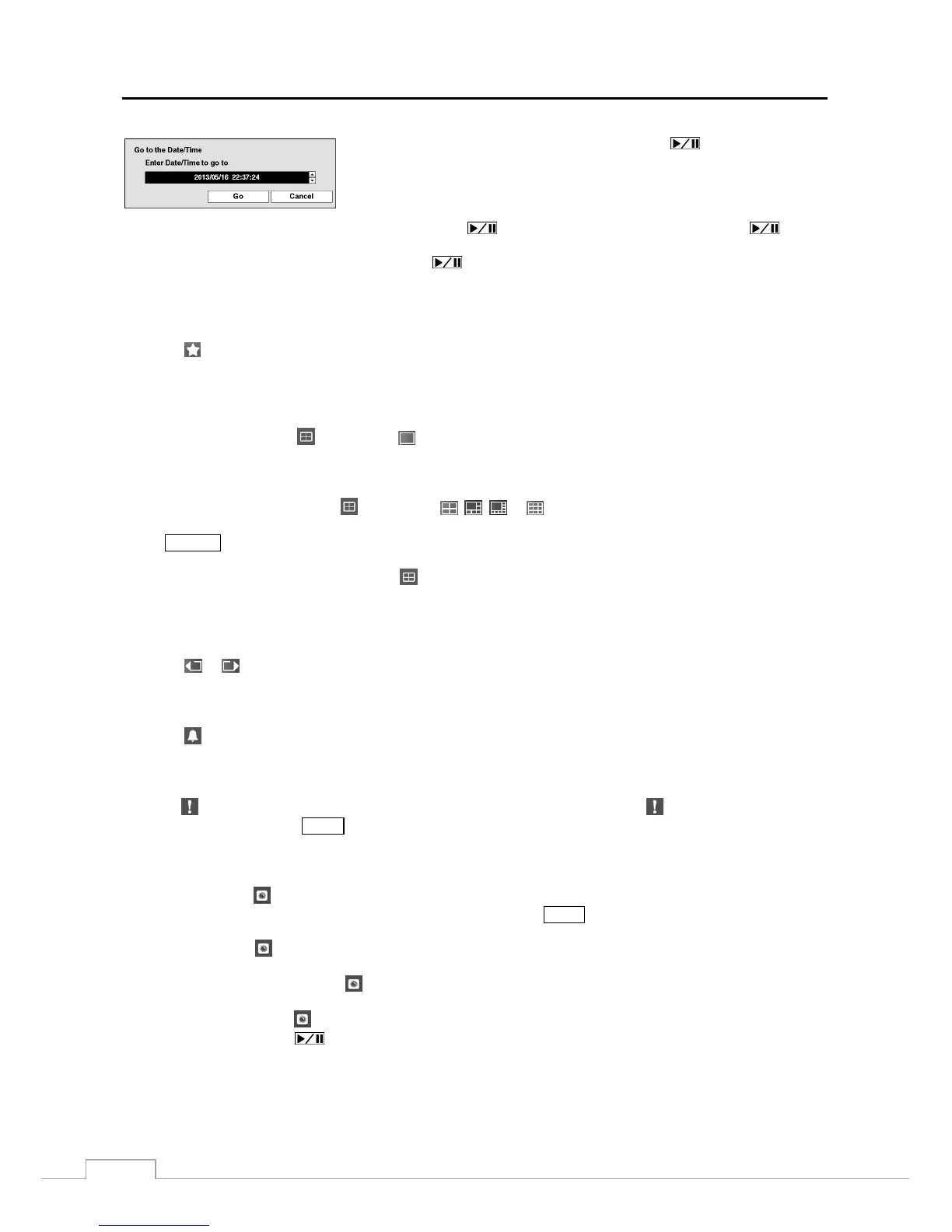 (Alarm) in the Search menu resets the DVR’s outputs including the internal buzzer during an alarm.