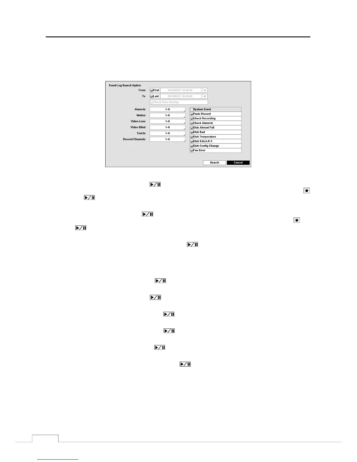 search for any reports of event recorded data. The DVR will display the events (not the camera channels) that occurred