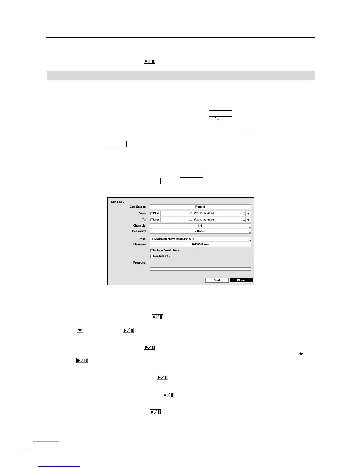 Selecting A–B Clip-Copy in the Search – Export menu or pressing the BACK UP button on the remote control during