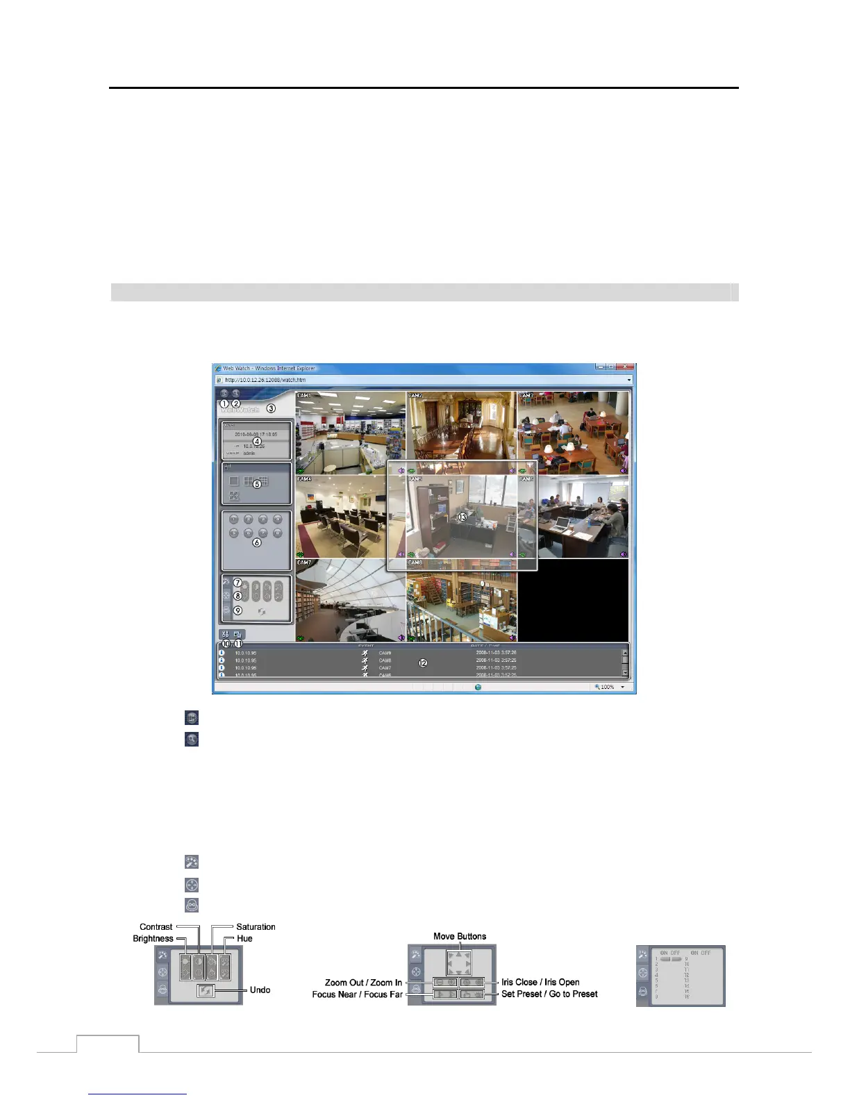 ⑦ Click the to adjust the brightness, contrast, saturation and hue of monitoring image.