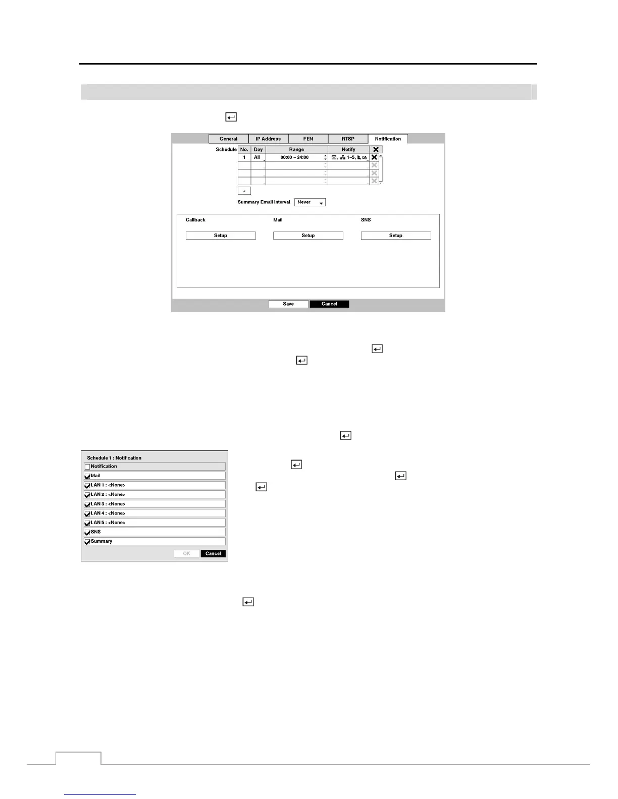 Figure 22 : Network – Notification setup screen.