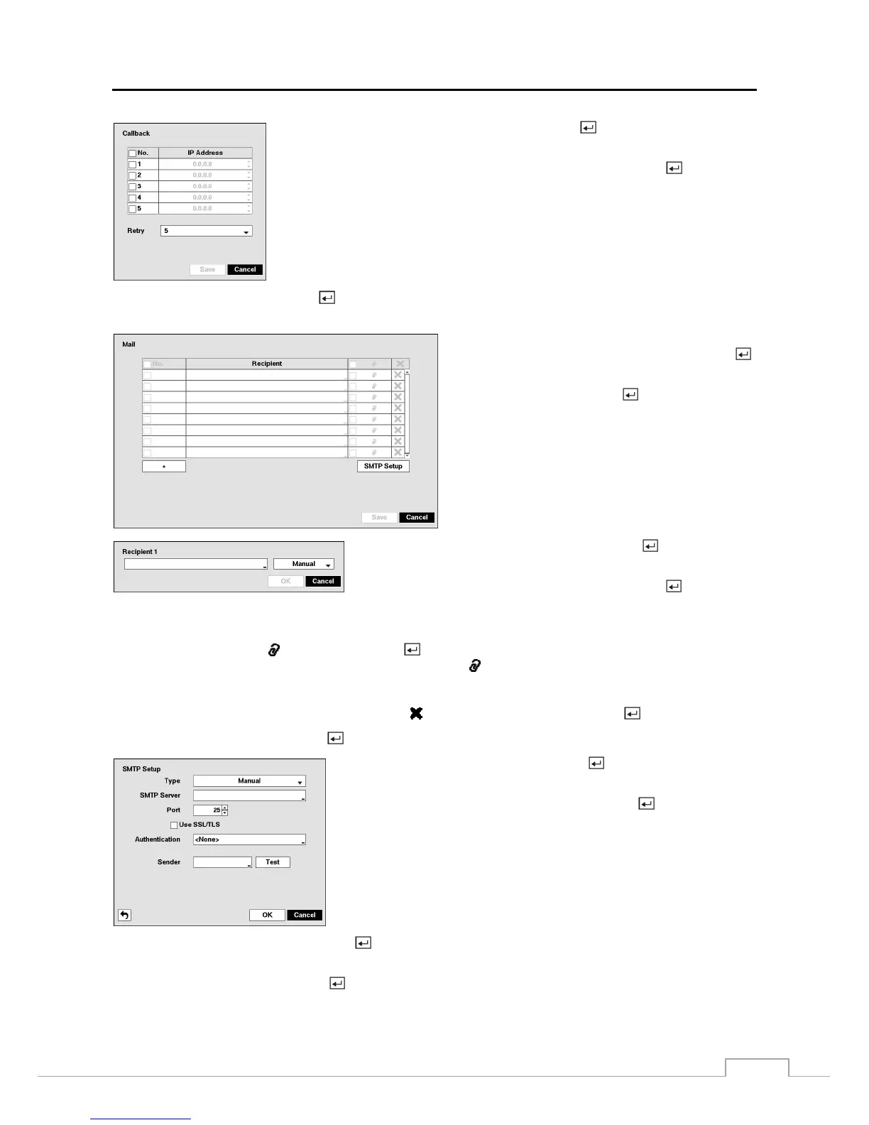 Highlight Mail – Setup and press the button, and the Mail screen appears. The DVR can be set up to send an email