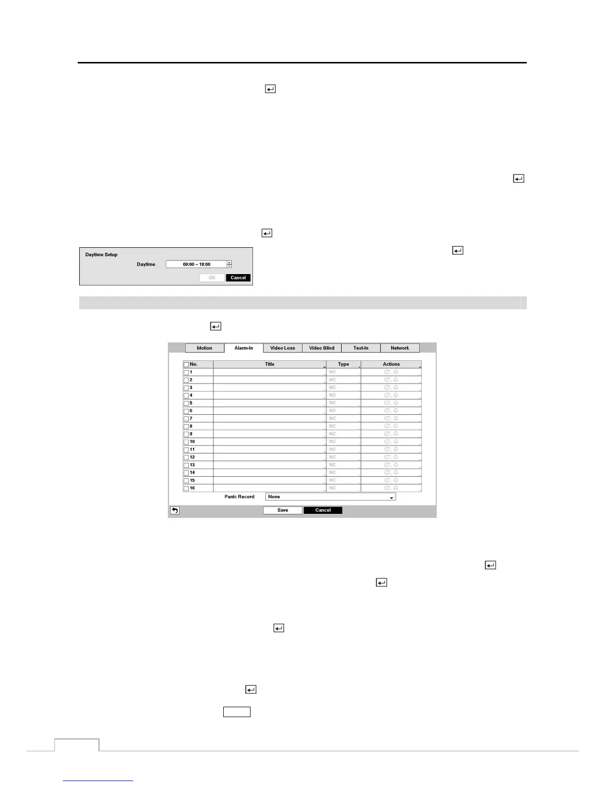 Up and Down arrow buttons to set the Daytime range. The DVR will