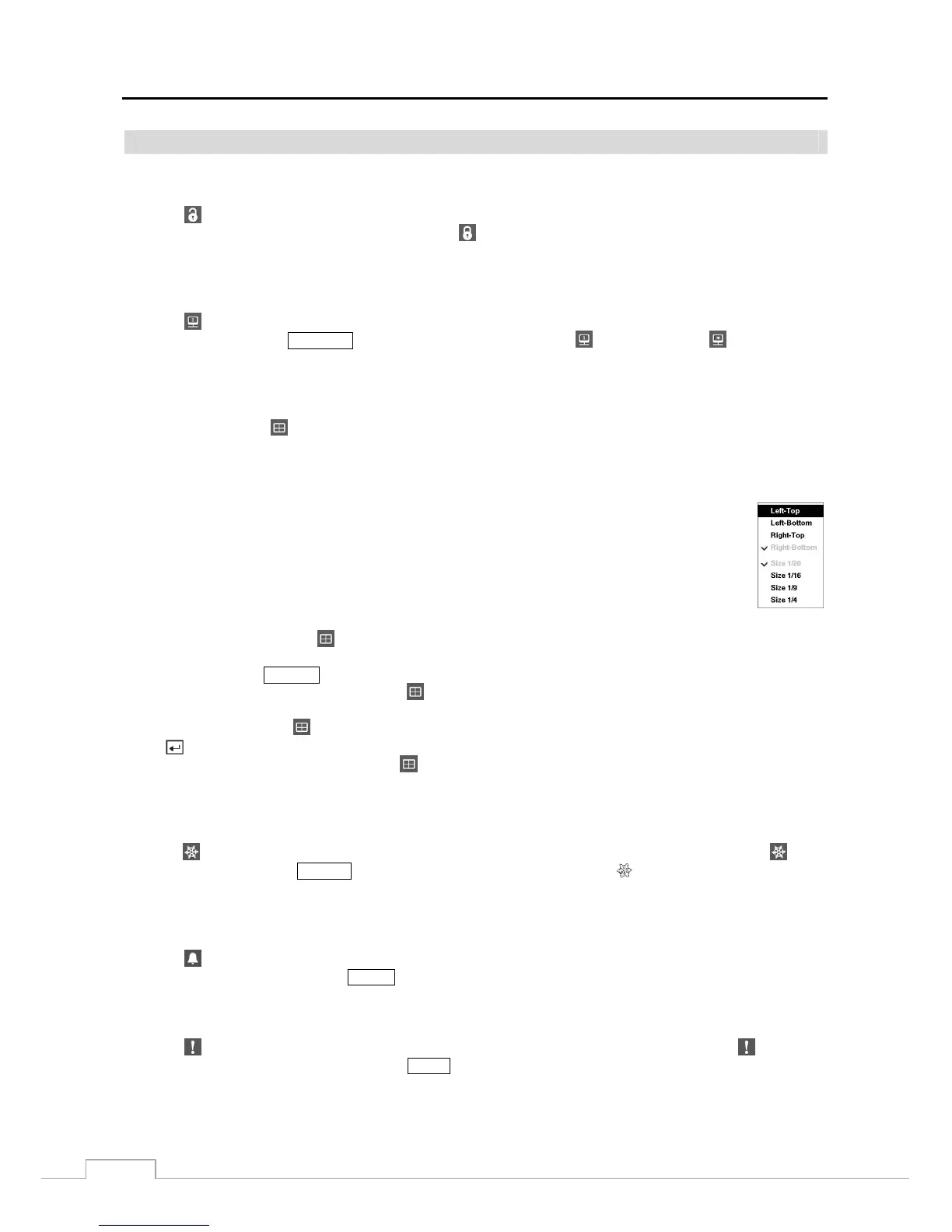 (Alarm) in the Live Monitoring menu resets the DVR’s outputs including the internal buzzer during an