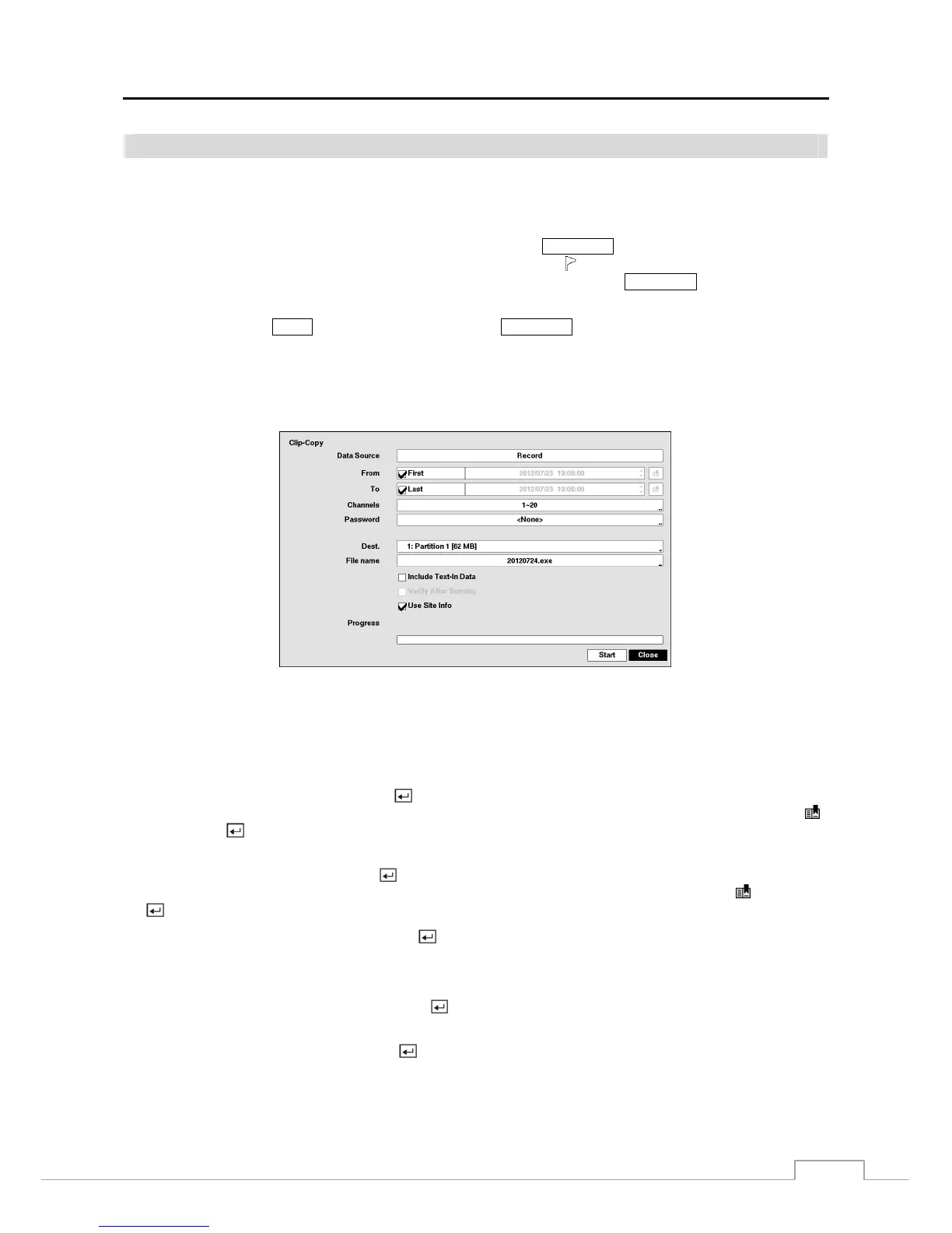 Select Clip-Copy in the Search – Export menu, and the Clip-Copy screen appears to allow clip copy setup.