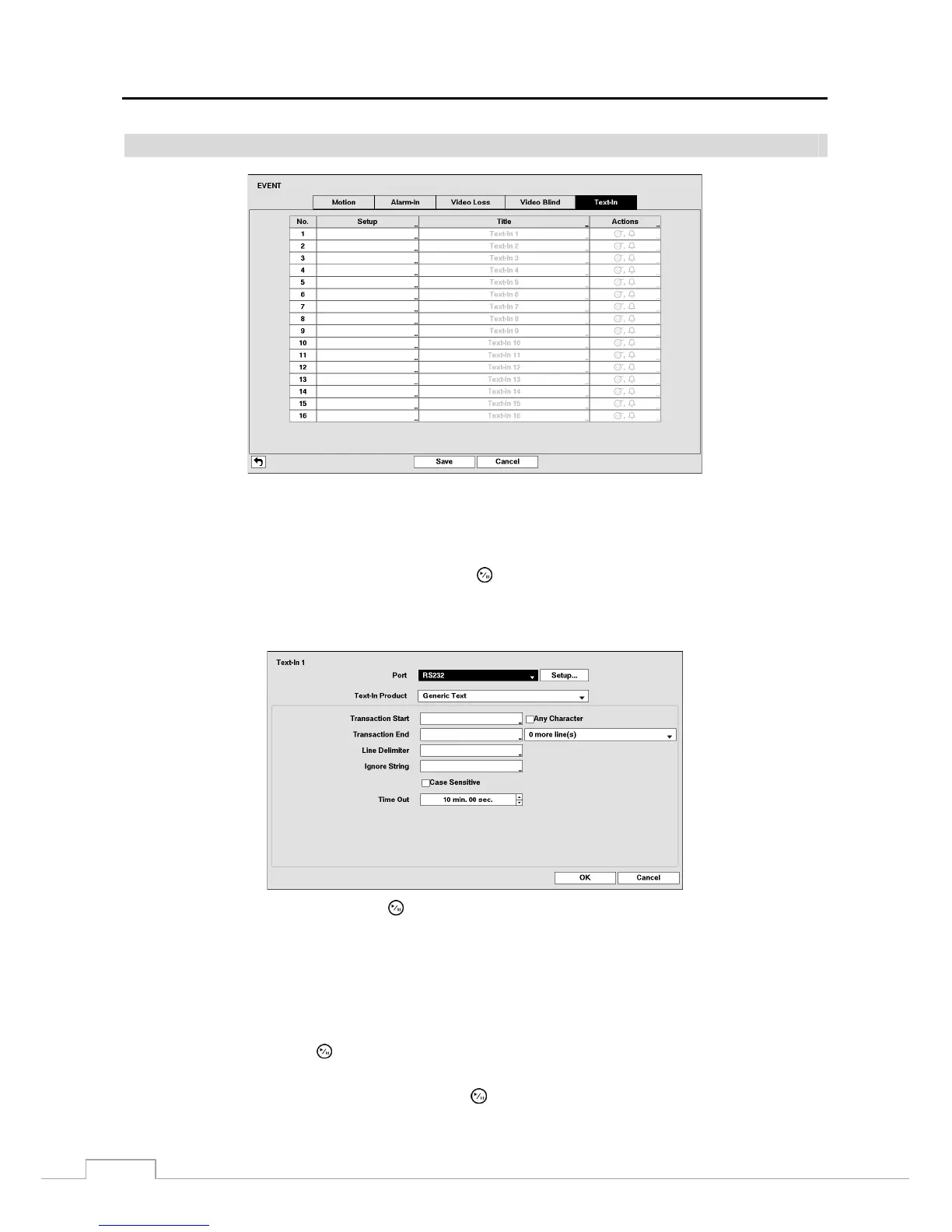 Figure 21: Event – Text-In setup screen.