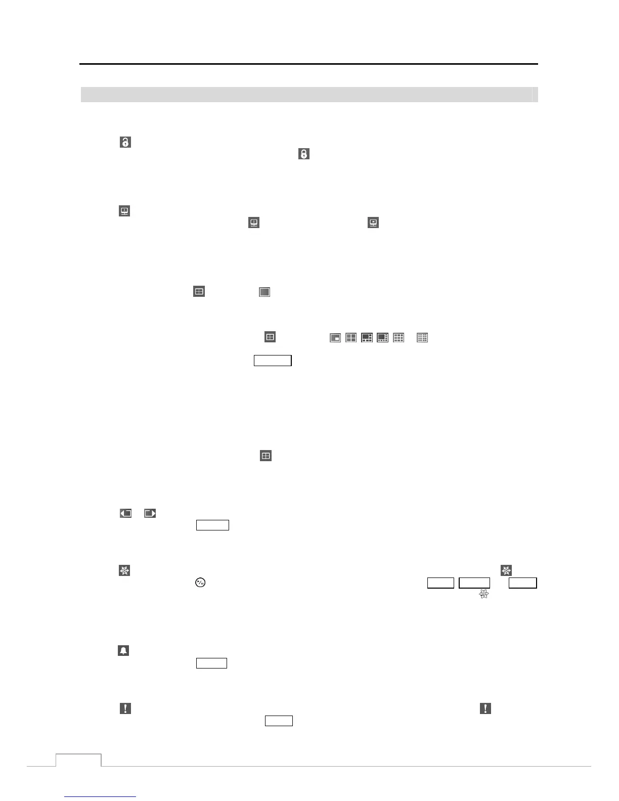 (Alarm) in the Live Monitoring menu resets the DVR’s outputs including the internal buzzer during an alarm.