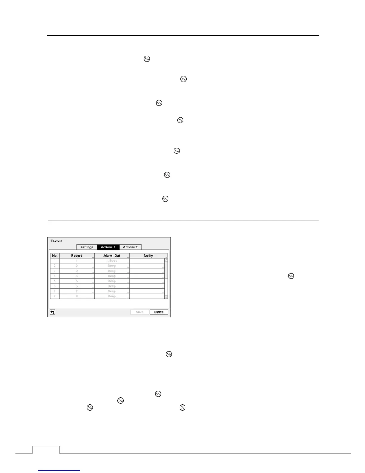 the associated Alarm-Out connectors. You can also have the DVR’s internal buzzer sound if text input is detected.