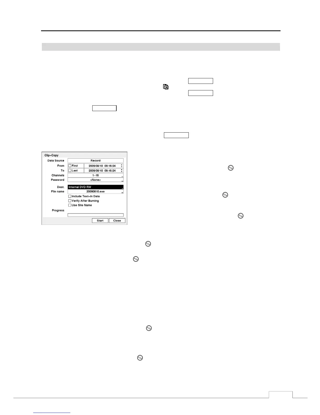 While copying video clips on the DVD RW, the DVR will stop archiving video data until clip copy is finished.