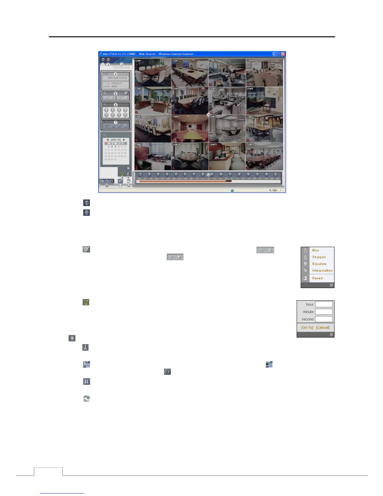 ⑤ Click the to blur, sharpen, equalize and interpolate playback images. Click the to zoom