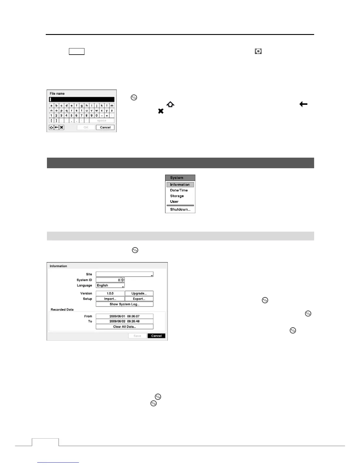 While setting up the DVR, there will be many opportunities to enter names and titles. When making these entries, a