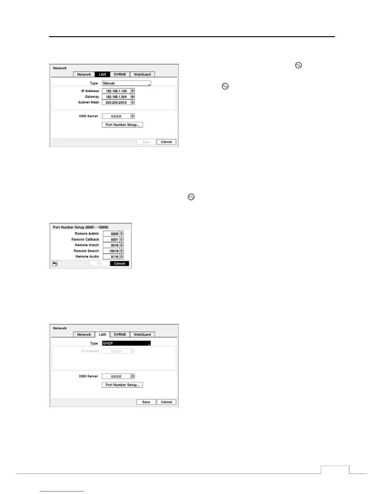 Highlight the box beside DNS Server. Press the Up and Down arrow buttons to set the IP address of the DNS server.