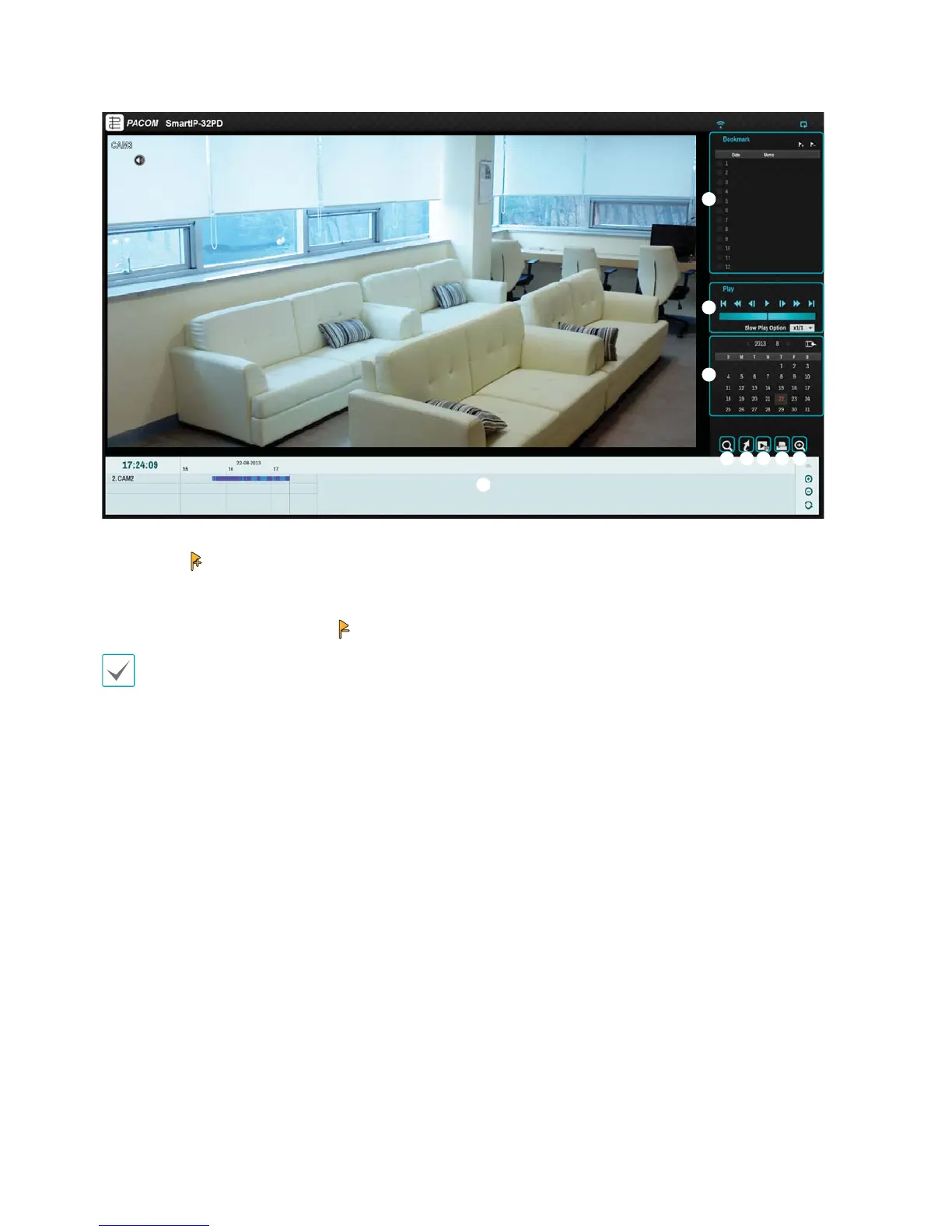 Use the calendar to search for video recordings by specic dates.