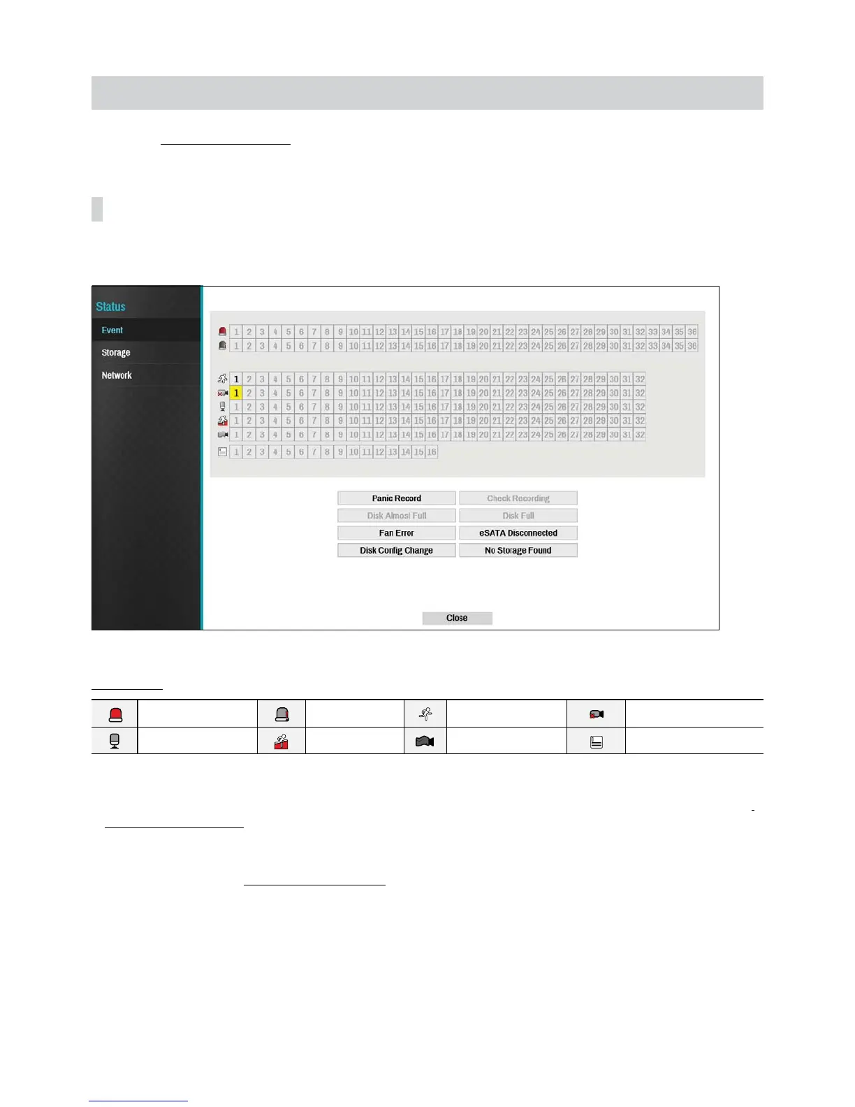 t Check Recording: Displays event status based on System Monitoring settings. For more information, refer to the