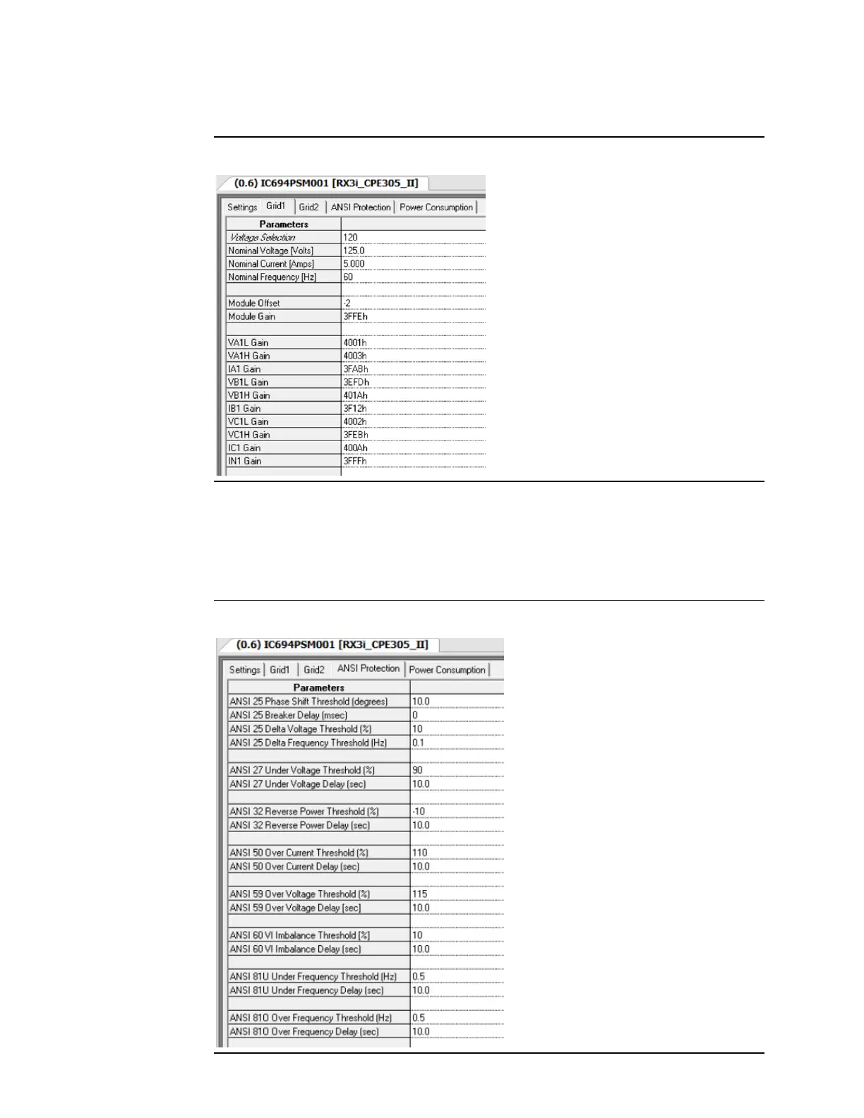 Grid 1 or Grid 2 Tab