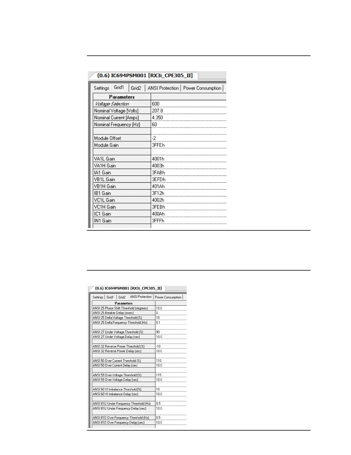 Grid 1 or Grid 2 Tab