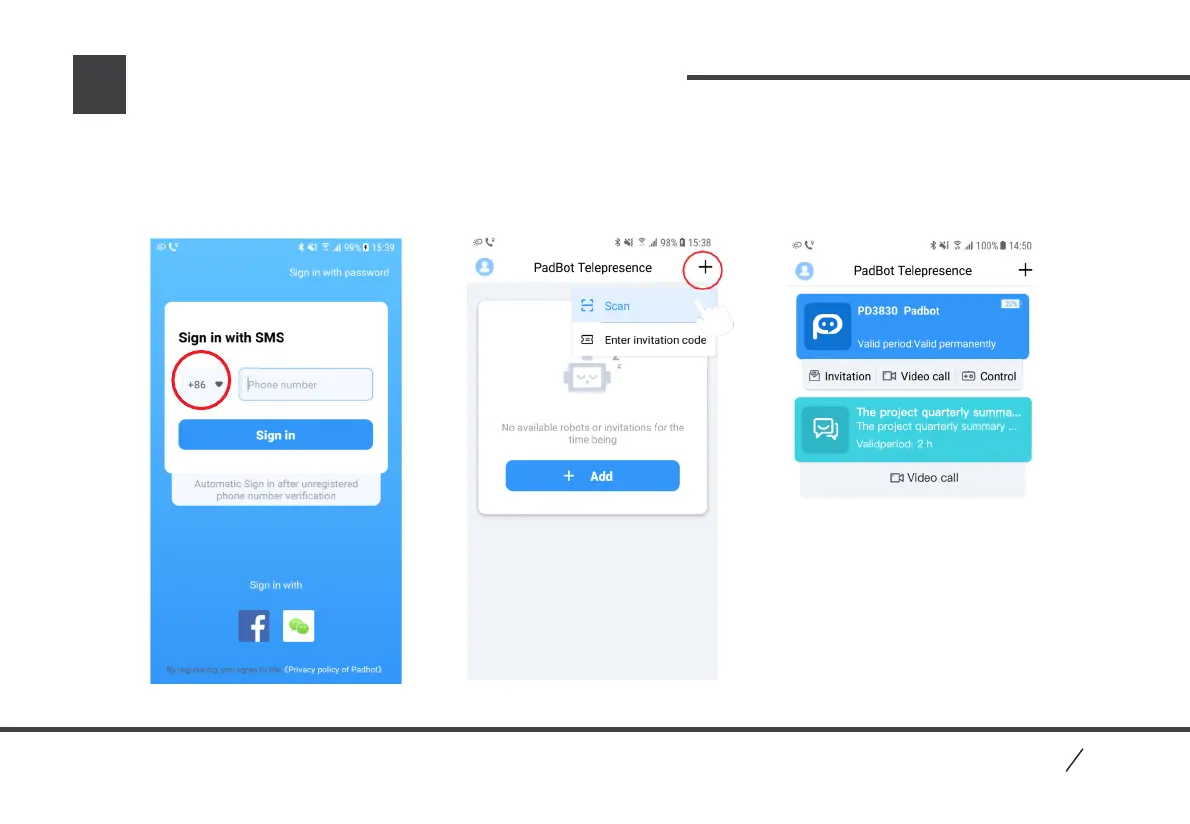 1. Open PadBot Telepresence Admin App, log in with phone number.