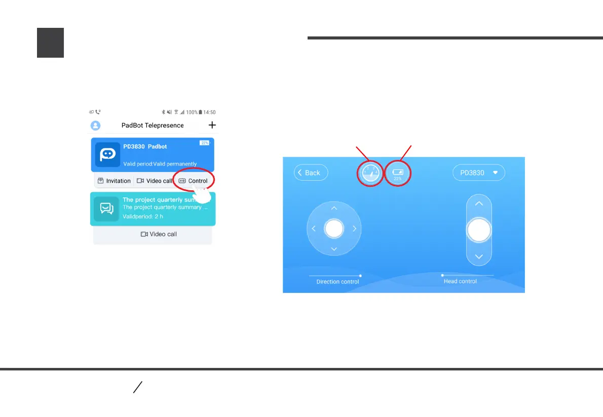 button. In Control page, user can also adjust robot speed and control robot to charge.