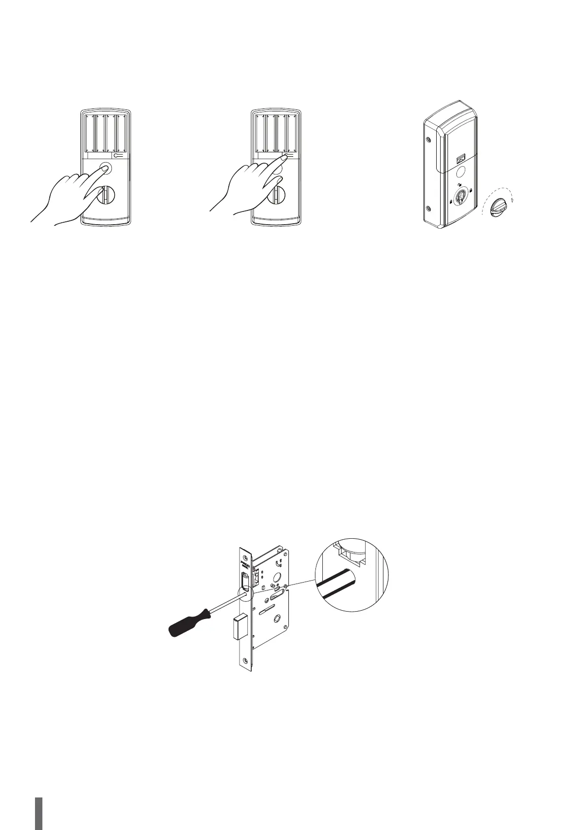 a porta, caso contrario problemas com sua abertura poderão ser observados. Realize o ajuste se posicionando no interior do ambiente,