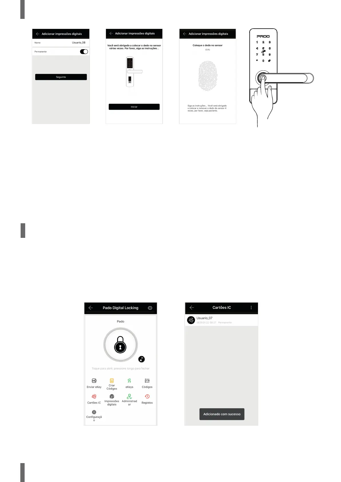 Posicione o dedo sob o leitor biometrico da fechadura, repetindo o processo por quatro vezes.