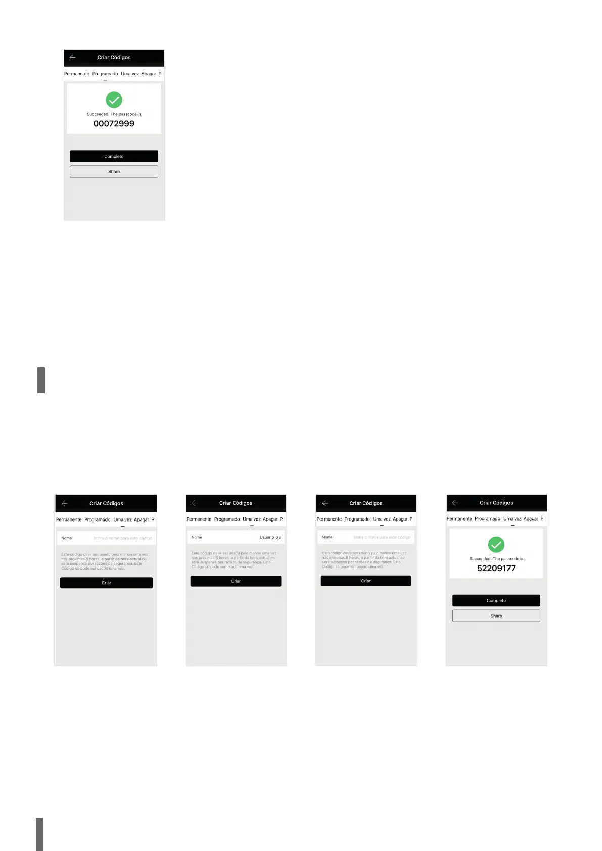 6.1.3 Senha numérica Modo Uma vez