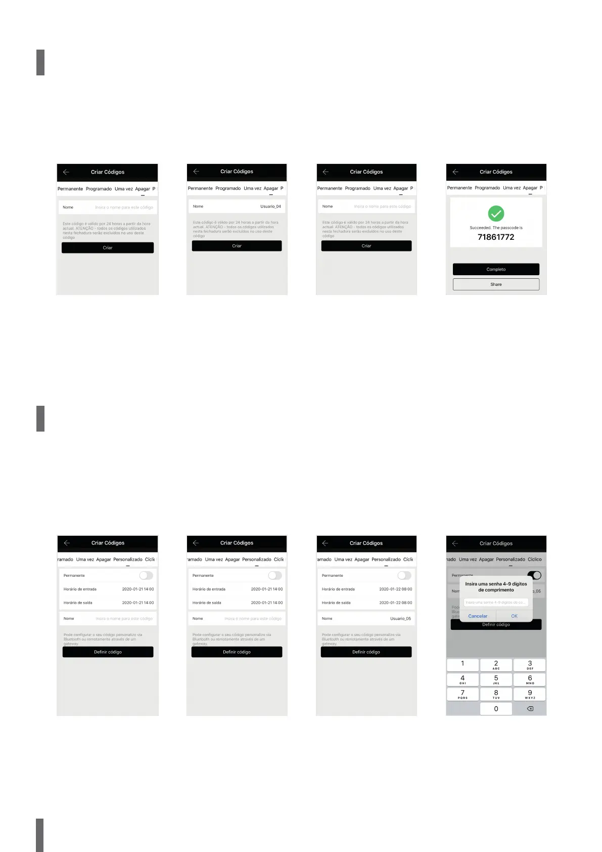 configurada em modo permanente ou com uma validade. Para criar uma senha numérica nesse modo, os seguintes passos deverão ser