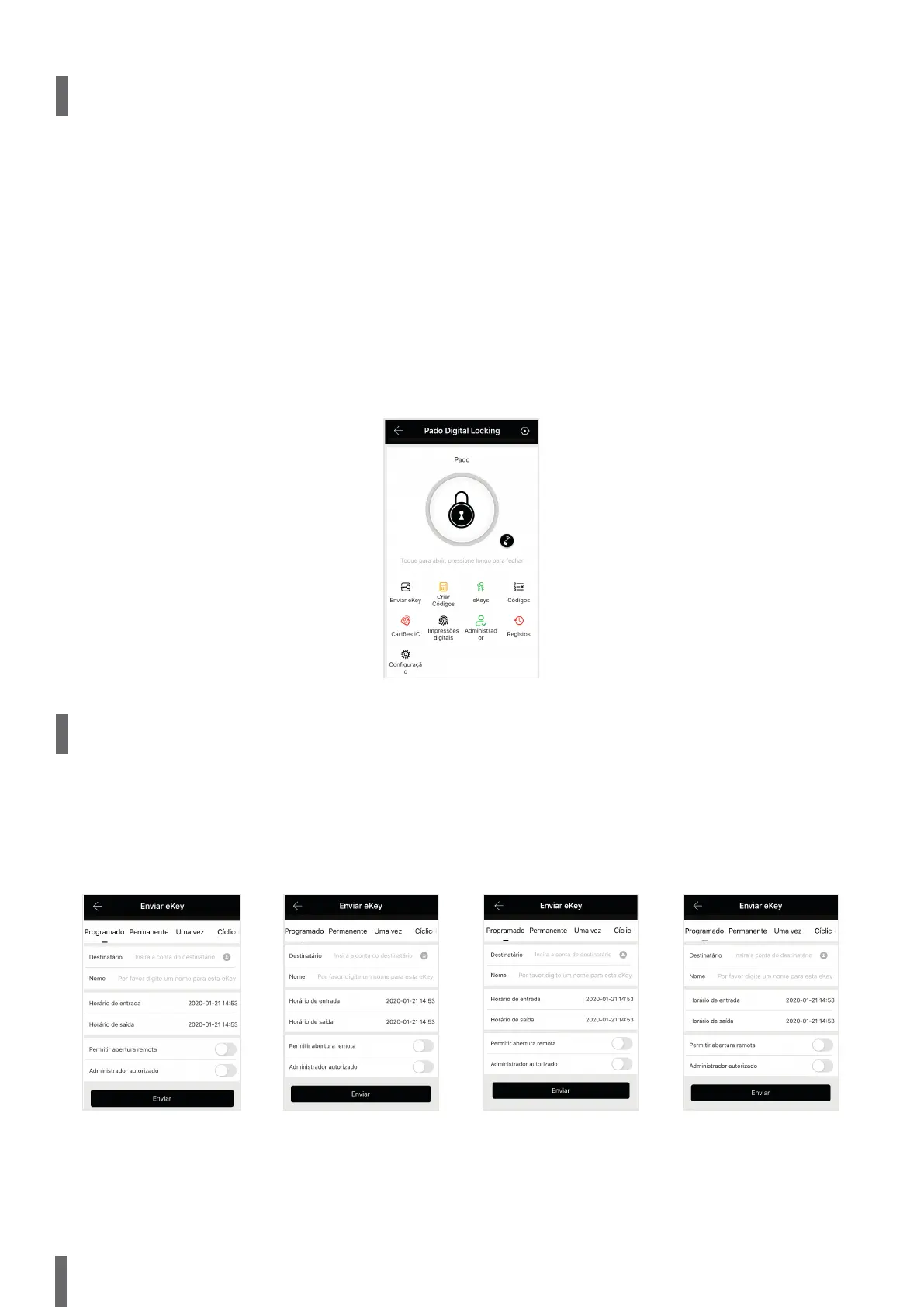 lock. Electronic keys can be shared with third parties, according to the user register, carried out in the Pado digital locking app. To create and forward electronic keys,