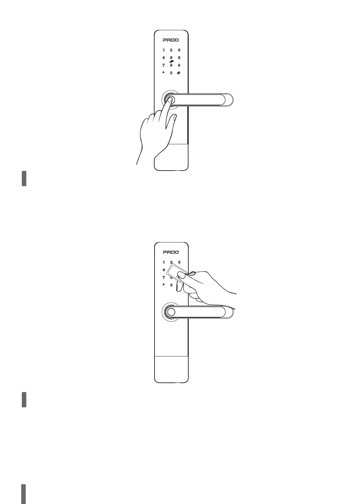 For FDE-600W digital lock opening using the Pado card acess, just get it close to the area indicated. After the recognition the lock will automatically open.