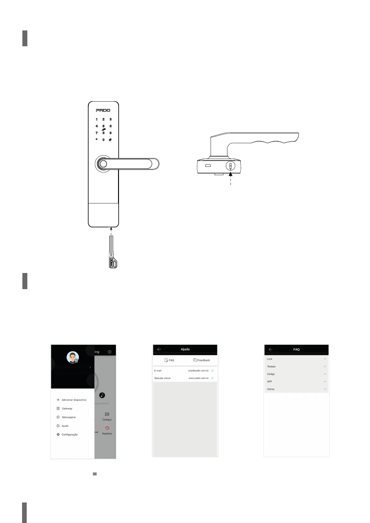 O aplicativo Pado digital locking possuiu uma seção referente a ajudar o usuário a sanar suas dúvidas. Para acessar essa função os