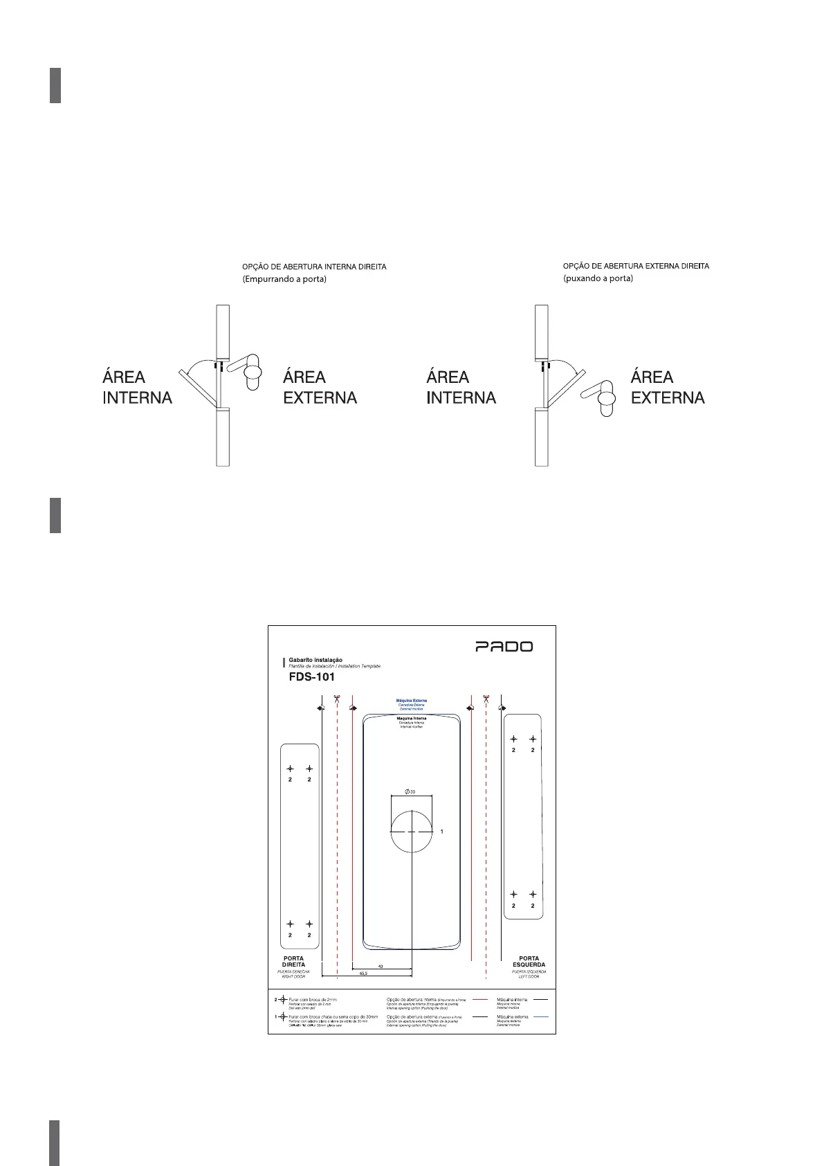 Com o gabarito de instalação em mãos, identifique a direção de abertura da porta (Direita ou Esquerda).