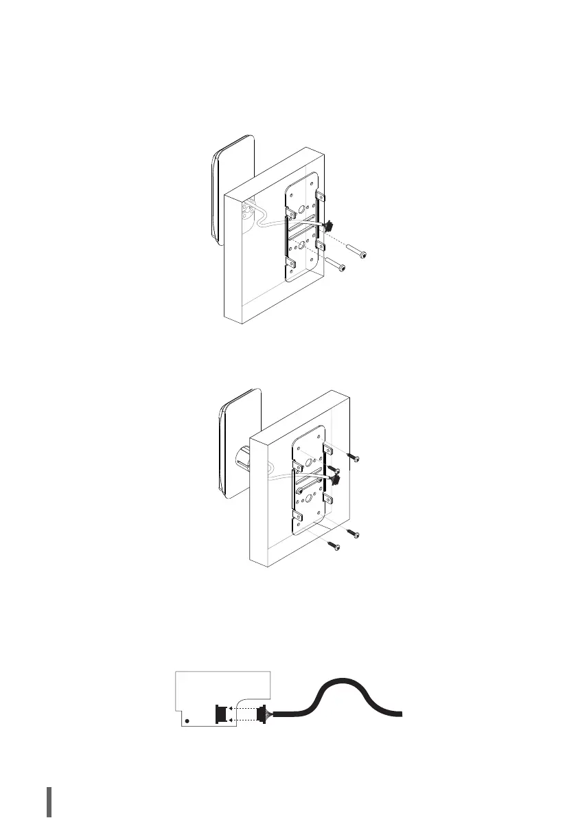 Desde el interior, coloque la placa de fijación, pasando el cableado a través de la ranura superior. Atorníllelo con los dos tornillos M5 x 30, que deben