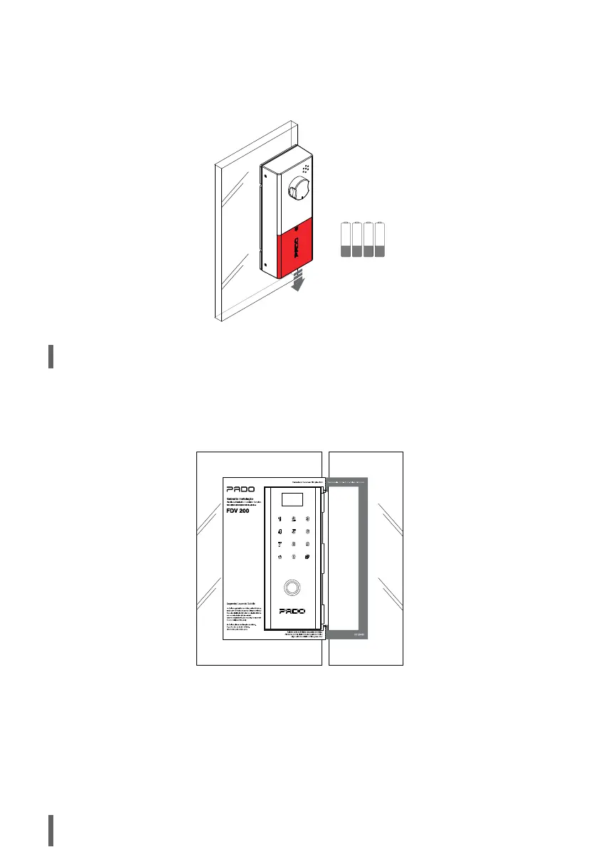 Con la cerradura completamente pegada al cristal, instale las 4 pilas AA en el compartimento de las pilas de la cerradura digital FDV-200.