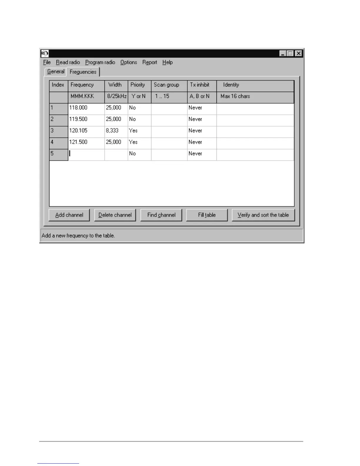 Enter frequencies in ICAO format. The software recognizes the frequency