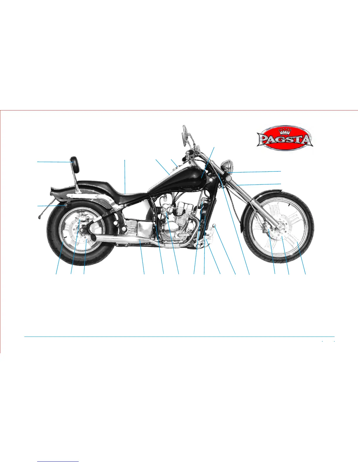 12. Battery 13.Right exhaust 14. Rear brake Disc 15. Rear brake Pump 16. Rear wheel 17. Rear right turn signal