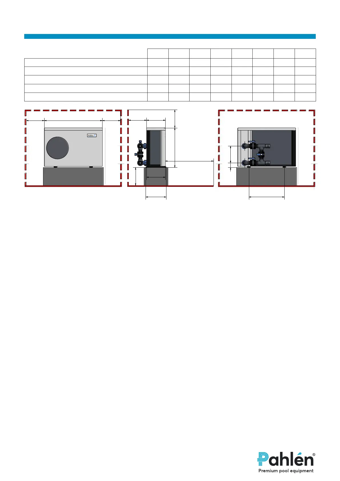 Note also that the pump requires at least 2500 mm space in front of it in order to prevent air recirculation.