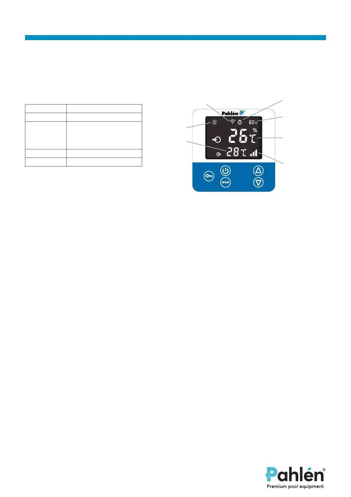 power to quickly heat up the pool. When the pool is heated to the desired temperature, “eco” operation is recommended.