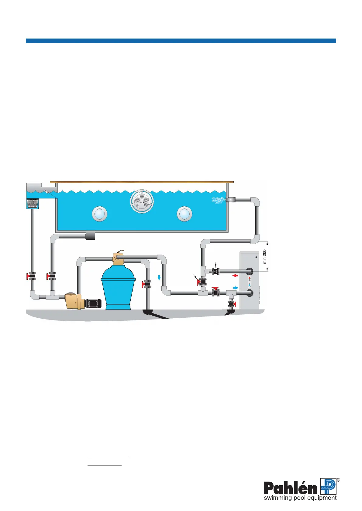 Obs! Installera ej en avstängningsventil mellan värmaren och swimmingpoolen(installeraenbackventilistället).
