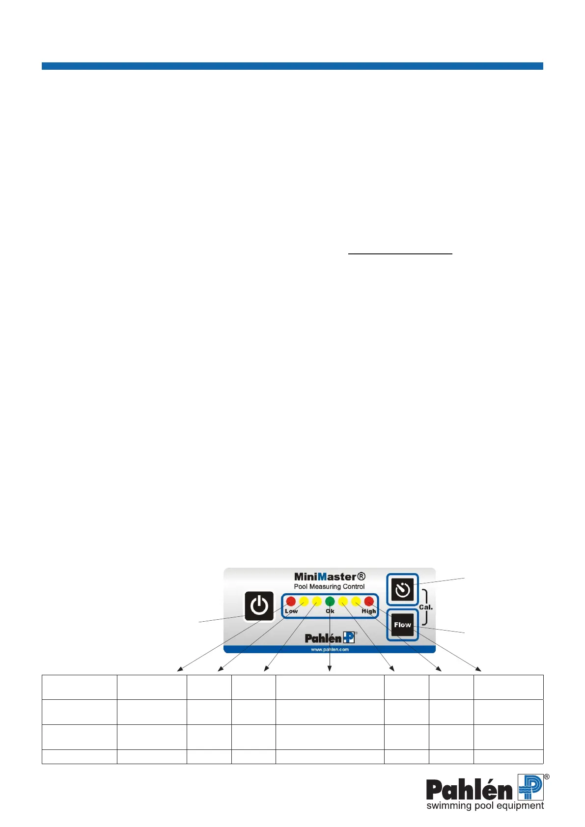 value, see table below. Flashing LEDs indicate that the MiniMaster is measuring, with the speed of the ashing showing
