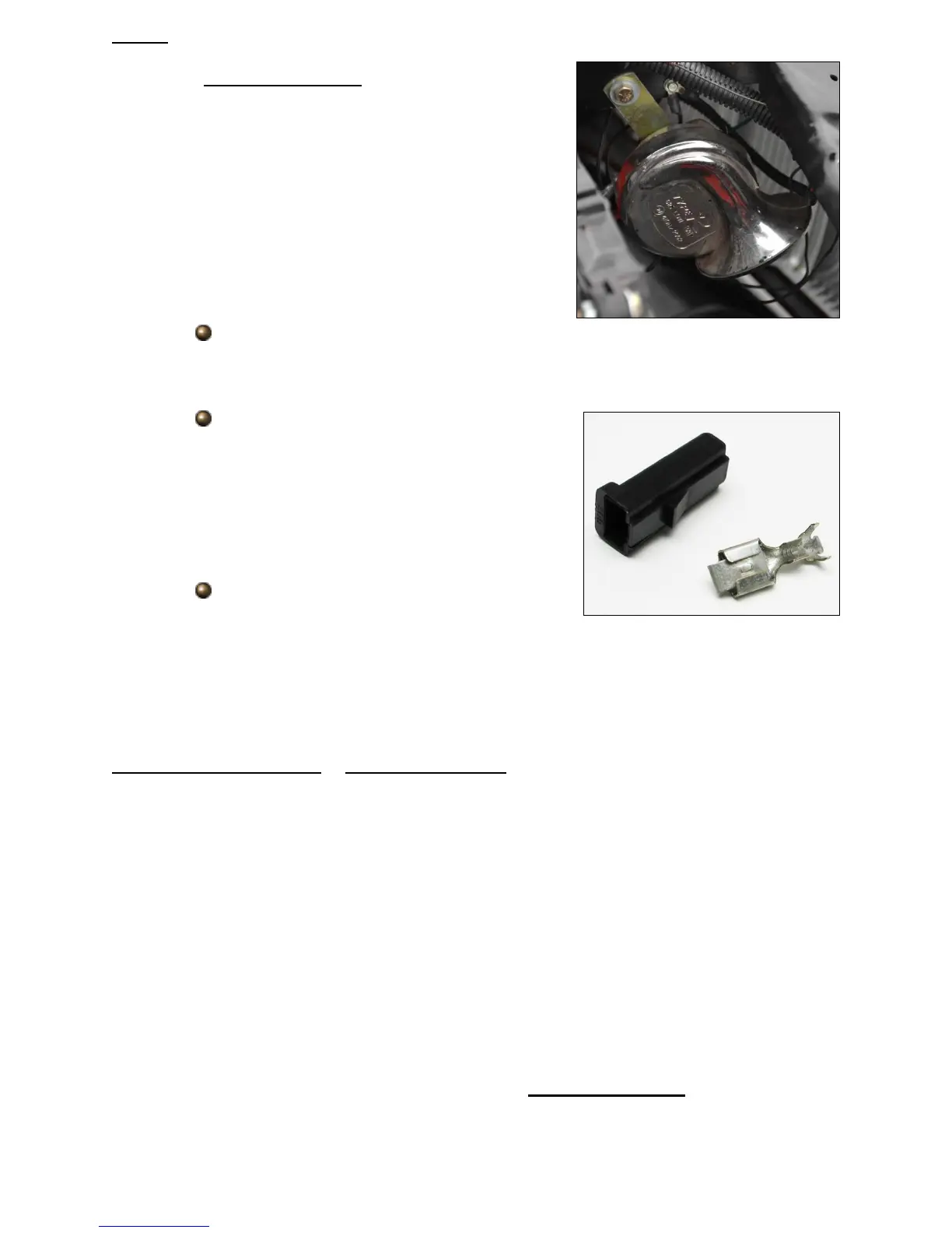 connections to connect the ground on the horn. Using a ring terminal from the parts kit,