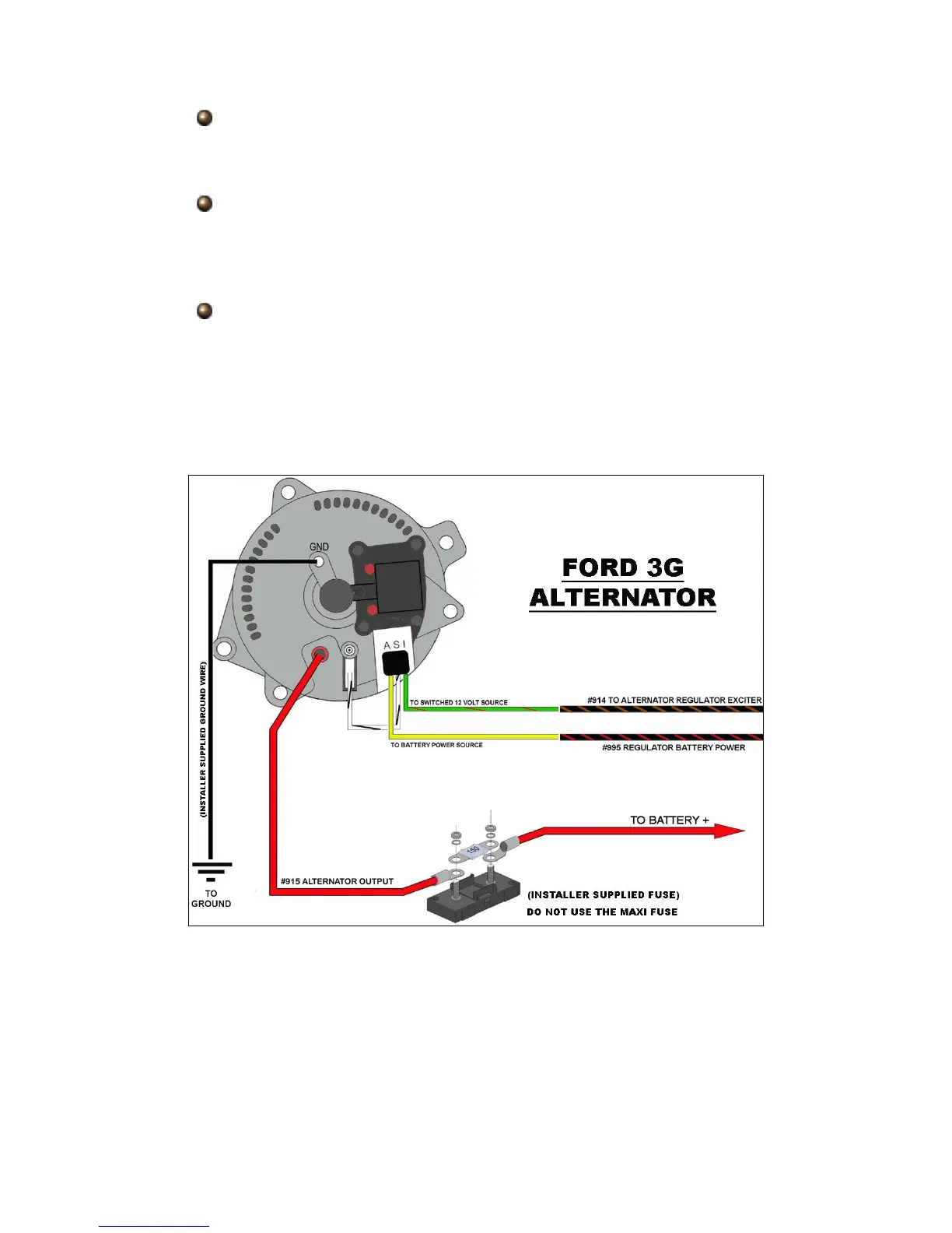 provided in the “ALTERNATOR” bag kit, splice the pigtail to the