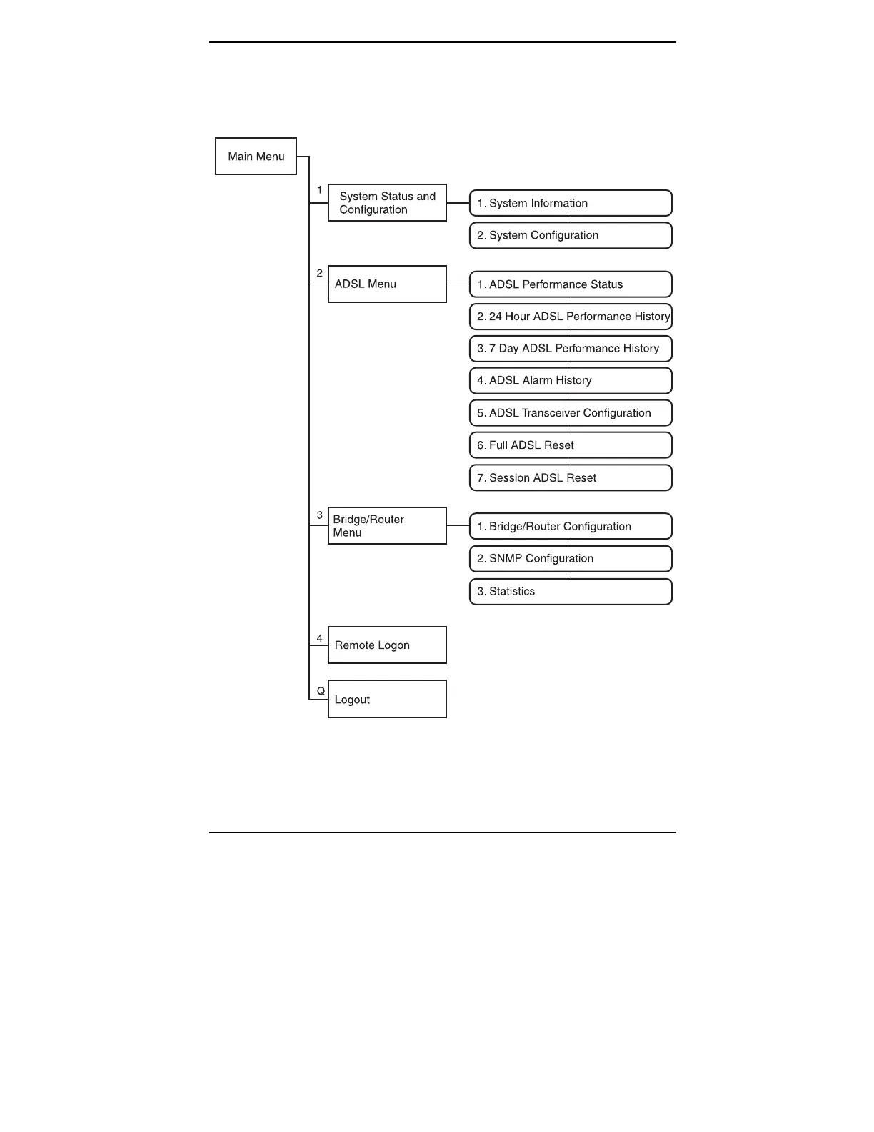 Figure 8 shows the structure for the Megabit Modem CRA-C menus. Type the