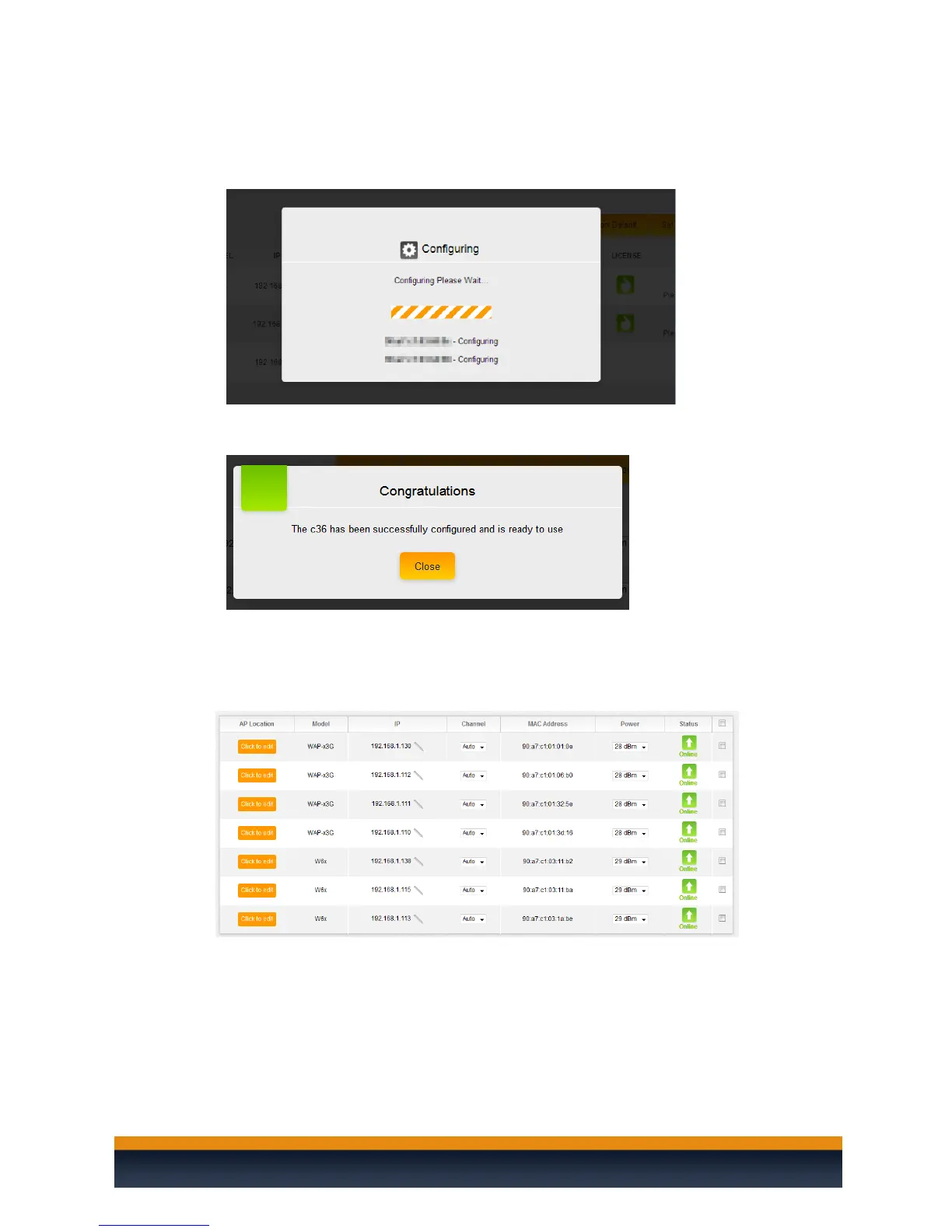 4. Once the C36 is done applying the configuration to the access points you will get the following